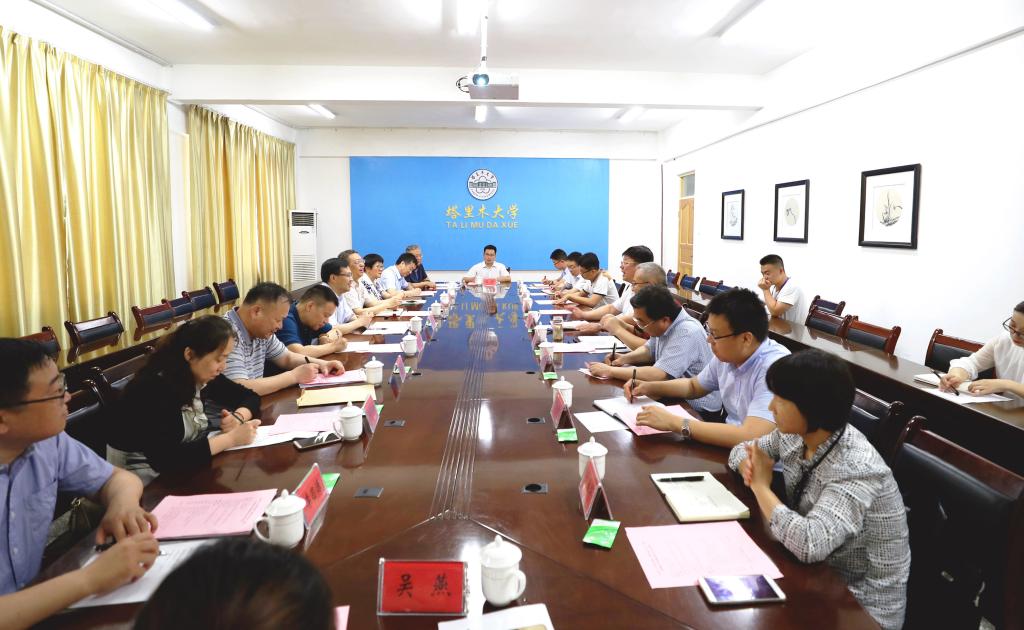 6月22日下午,石河子大學醫學院(塔里木大學)分院管理運行機制座談會在行政樓317會議室舉行。石河子大學黨委副書記、校長代斌,黨委副書記、紀委書記許先鋒,塔里木大學黨委副書記、校長張傳輝,黨委常委、副校長曲義勇及兩校的相關部門負責人,一師黨委組織部等部門相關人員參加座談。座談會由曲義勇主持。
