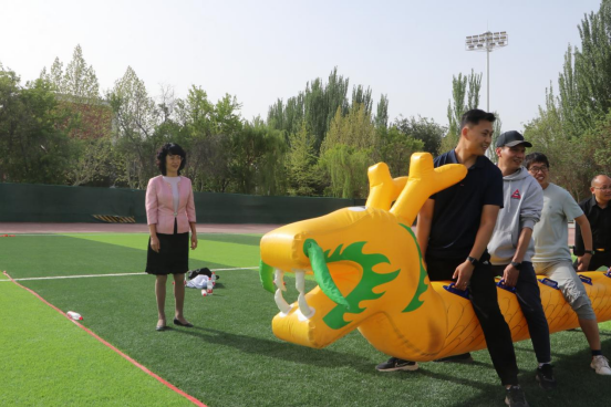 4月27日下午,塔里木大學2023年慶“五一”教職工趣味運動會在東區運動場舉辦,黨委副書記、校長張愛萍到場指導活動開展,并為運動員加油助威。運動會設旱地龍舟、八仙過海、背靠背夾球、無敵風火輪四個項目,參與人數達1300余人次。