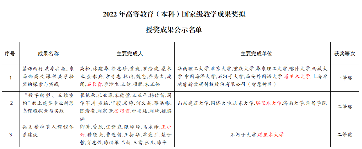 5月15日,教育部公布了2022 年高等教育(本科)國家級教學成果獎擬授獎成果公示名單,我校參與的3項教學成果獲獎,其中一等獎1項,二等獎2項。實現了學校國家級教學成果獎零的突破。