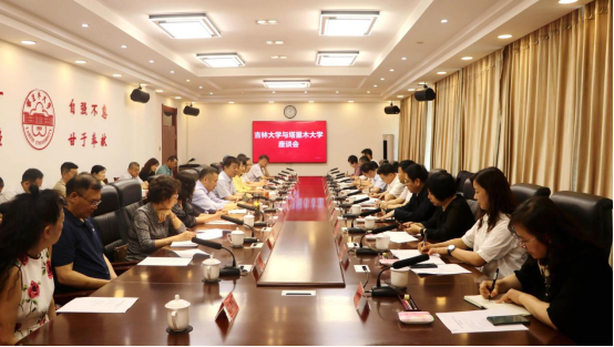 5月23日下午,吉林大學黨委常委、常務副校長鄭偉濤一行來校訪問,與我校黨委書記趙光輝,黨委副書記、校長張愛萍,黨委常委、副校長趙峰華、石長青等領導進行座談交流。吉林大學相關領導,我校有關學院、部門負責同志、銀齡教師參加。會議由張愛萍主持,在行政樓五號會議室舉行。