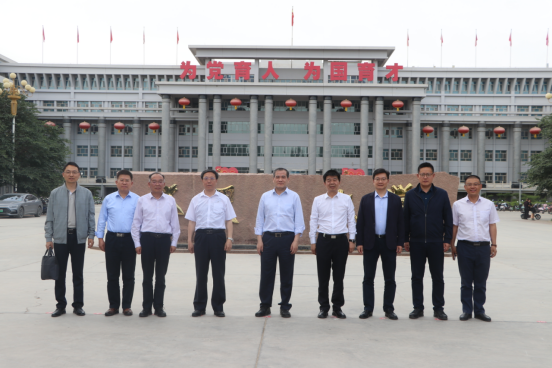 徐孝民一行在趙光輝等領導陪同下,先后來到綜合樓、新時代文化廣場、校史館、新校區(東擴區)等處進行了參觀調研。
