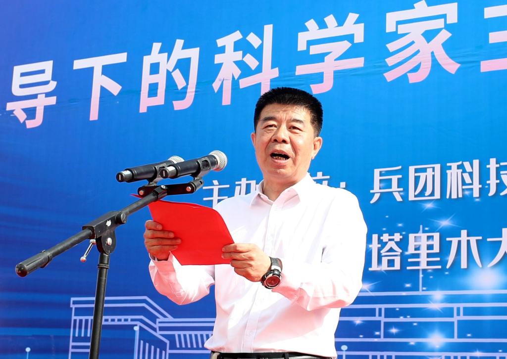 趙光輝致詞,代表學校黨委和全體師生員工向各位領導、嘉賓、科技工作者代表、優秀研究生代表表示歡迎,對兵團科技局、兵團科協長期以來對學校事業發展的大力支持表示感謝。他指出,本次科技工作者日啟動是對我國科學家在黨領導下為國家發展、民族復興所作出的杰出貢獻的高度肯定,也是兵團黨委和兵團科技局、兵團科協對塔里木大學事業發展的充分信任。科技工作者們是推動國家科技事業發展的中流砥柱,是推動社會進步、促進人類文明發展的重要力量。