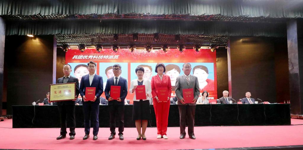 大會宣讀了《關于2022年獲得支持建設的一批科技小院授牌的通報》《關于近五年獲得兵團級及以上先進集體和個人的表彰通報》,為2022年獲得支持建設的一批科技小院、兵團科技特派員工作先進集體、兵團優秀科技特派員、兵團青年科技獎、兵團科學技術獎一等獎、二等獎、三等獎、全國脫貧攻堅獎組織創新獎、兵團科學技術“突出貢獻獎”、第二屆全國創新爭先獎獲得者進行了授牌、頒獎。