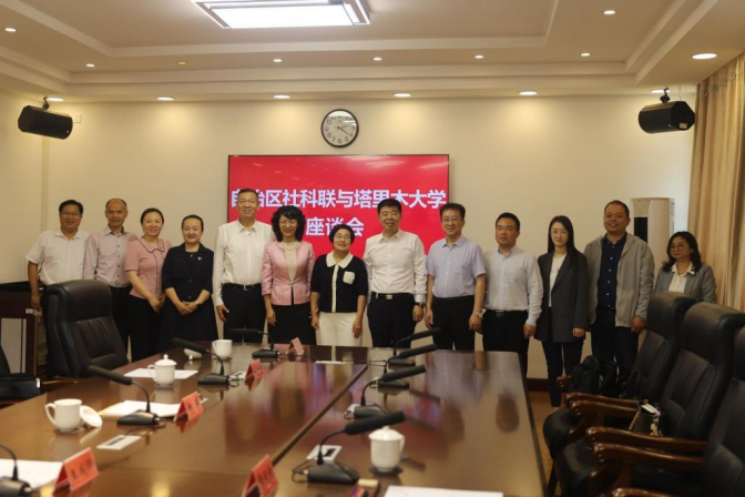 趙光輝歡迎盧春萍一行的到來,介紹了我校發展成就尤其是繁榮發展校園文化和哲學社會科學等有關工作情況。希望自治區社科聯支持幫助塔大發展,建好社科聯機構,做好社科聯工作,加強學術研究和宣傳闡釋,進一步傳播“用胡楊精神育人、為興疆固邊服務”的生動實踐。