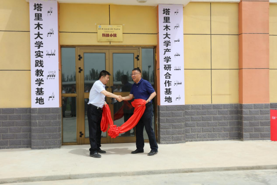 塔里木大學黨委書記趙光輝,阿克蘇地委委員、庫車市委書記王魯軍共同為庫車市驢科技小院揭牌。