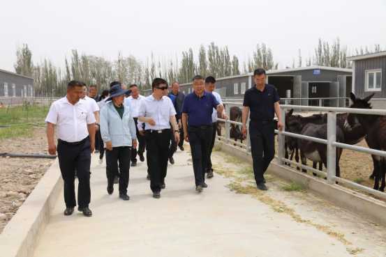 儀式后,趙光輝一行在王魯軍等領導陪同下參觀了驢養殖基地、冰鮮驢奶和凍干驢奶粉生產情況,與合作社負責人、技術專家就合作社養殖規模、產奶量、飼養管理方式、產品定位開發等進行了交流。趙光輝還來到庫車市現代農業科創中心實地調研。