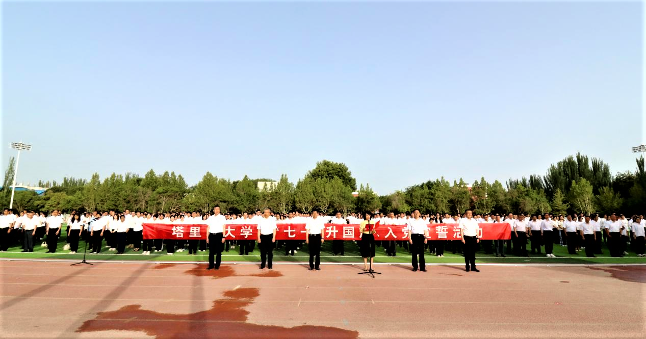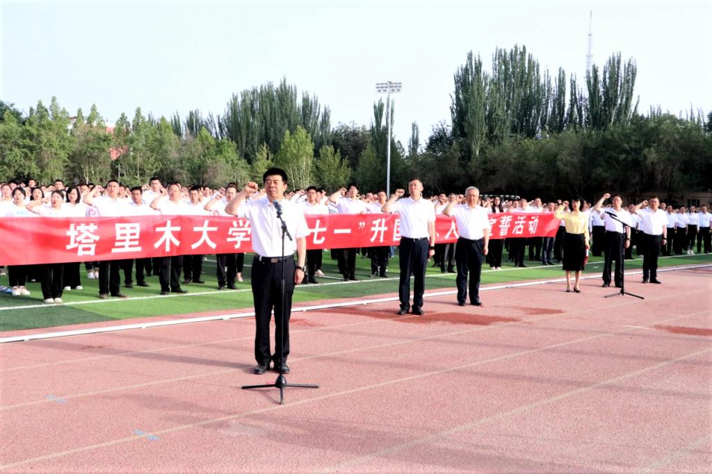 在中國共產(chǎn)黨成立102周年之際,6月28日上午,伴隨著雄壯的奏唱國歌聲,塔里木大學(xué)慶“七一”升國旗、入黨宣誓活動在東區(qū)運(yùn)動場舉行。黨委書記趙光輝出席并講話。黨委副書記、校長張愛萍主持。