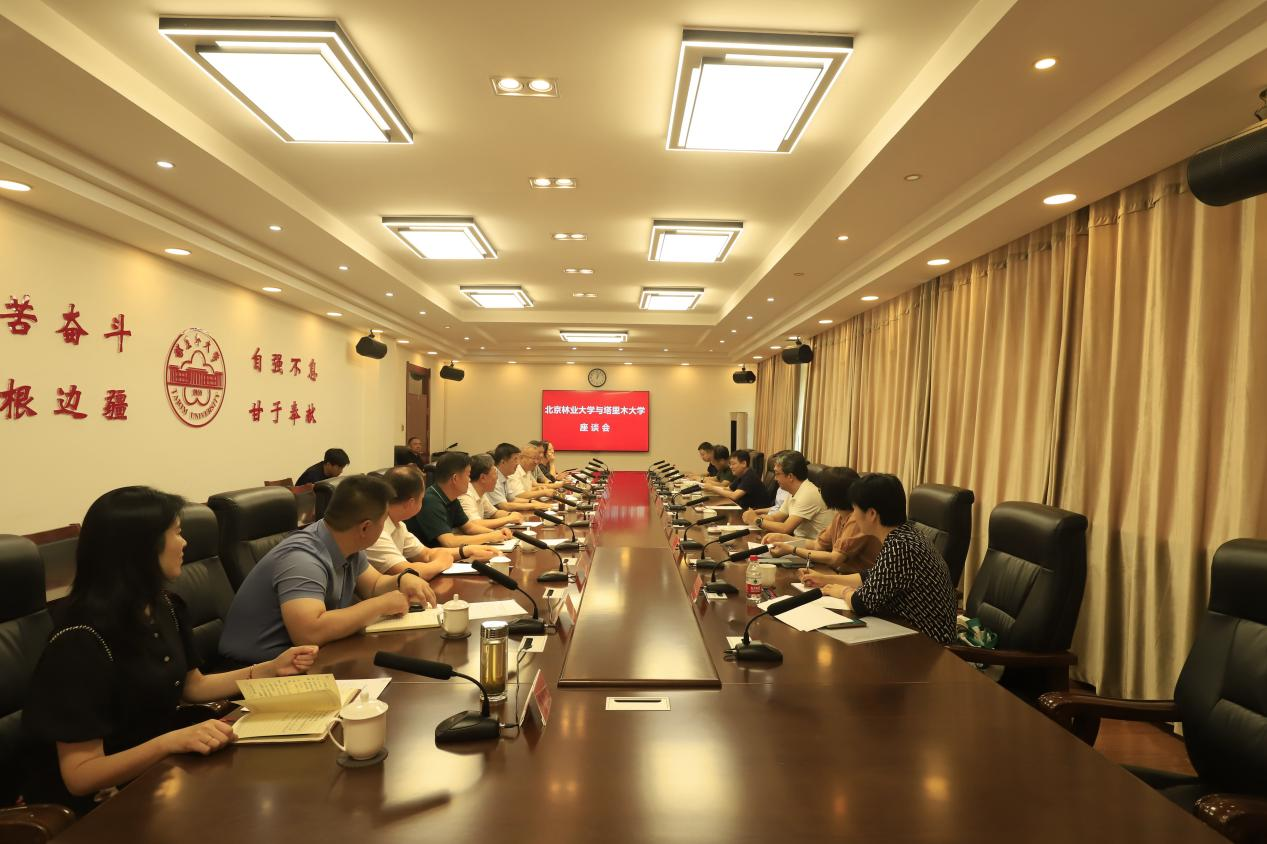 校領導曲義勇主持。校領導趙峰華、于軍,北京林業大學、塔里木大學相關部門、學院領導參加。座談會在行政樓五號會議室召開。(文/胡新榕 攝/趙世彥)