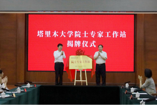 中國工程院院士、新疆農墾科學院尹飛虎研究員,塔里木大學黨委書記趙光輝,共同為“塔里木大學院士專家工作站”揭牌。