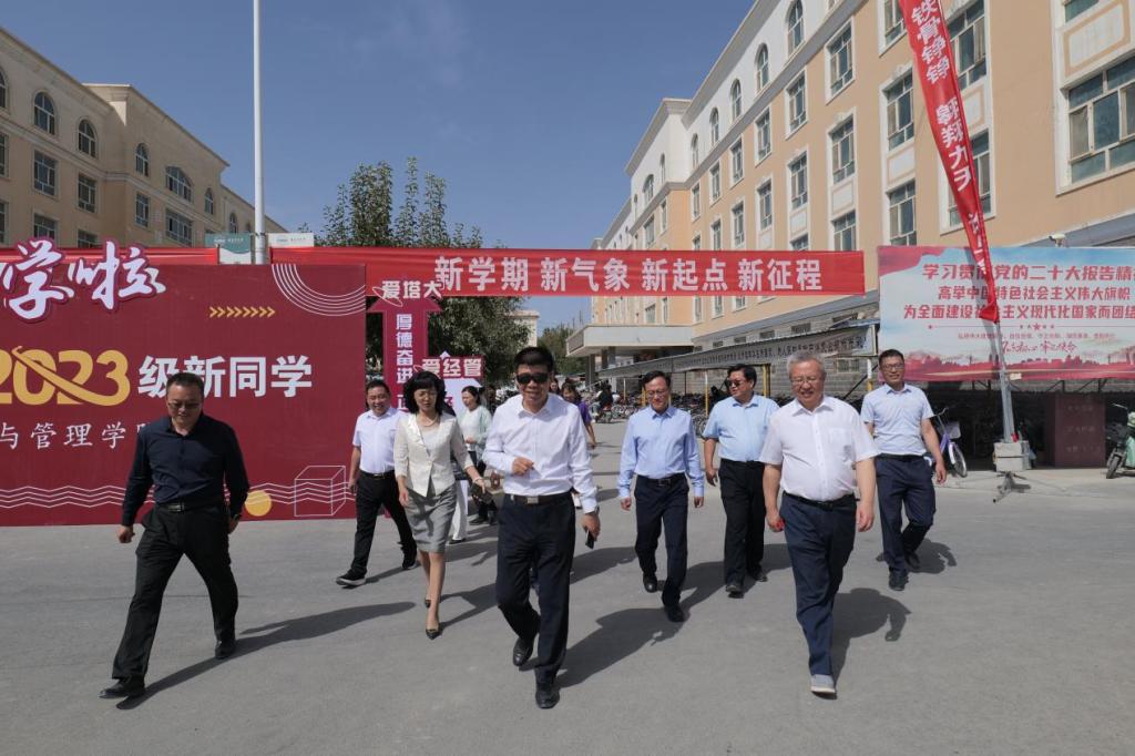9月7日上午,黨委書記趙光輝,黨委副書記、校長張愛萍,黨委常委、副校長曲義勇、石長青、林松濤,來到迎新現場看望新生及家長,檢查指導迎新工作。