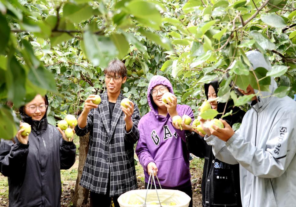 啟動儀式結束后,校領導與師生們一起走進果園采摘,共品勞動的果實,共享收獲的喜悅。