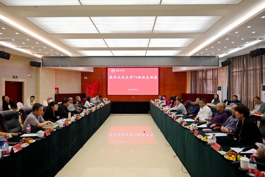 情系母校再聚首,共億卌載同窗情。9月22日,我校農學79班23位校友重聚母校,并與校、院領導等進行深入座談交流。
