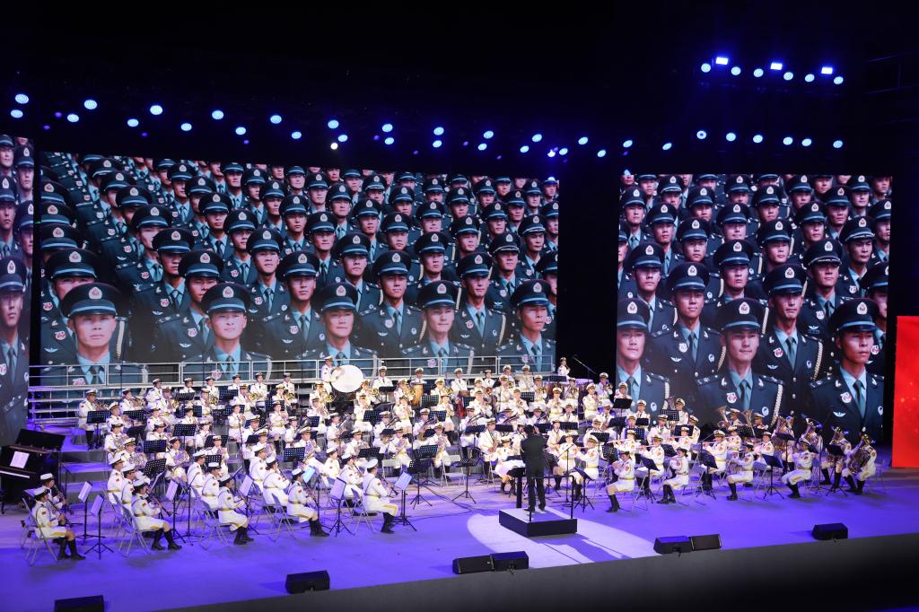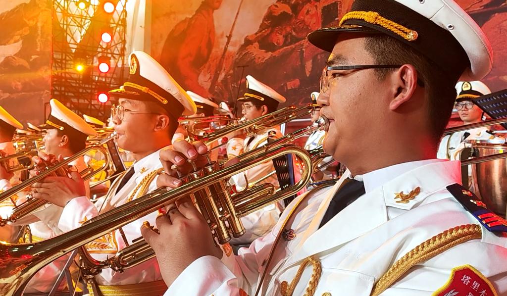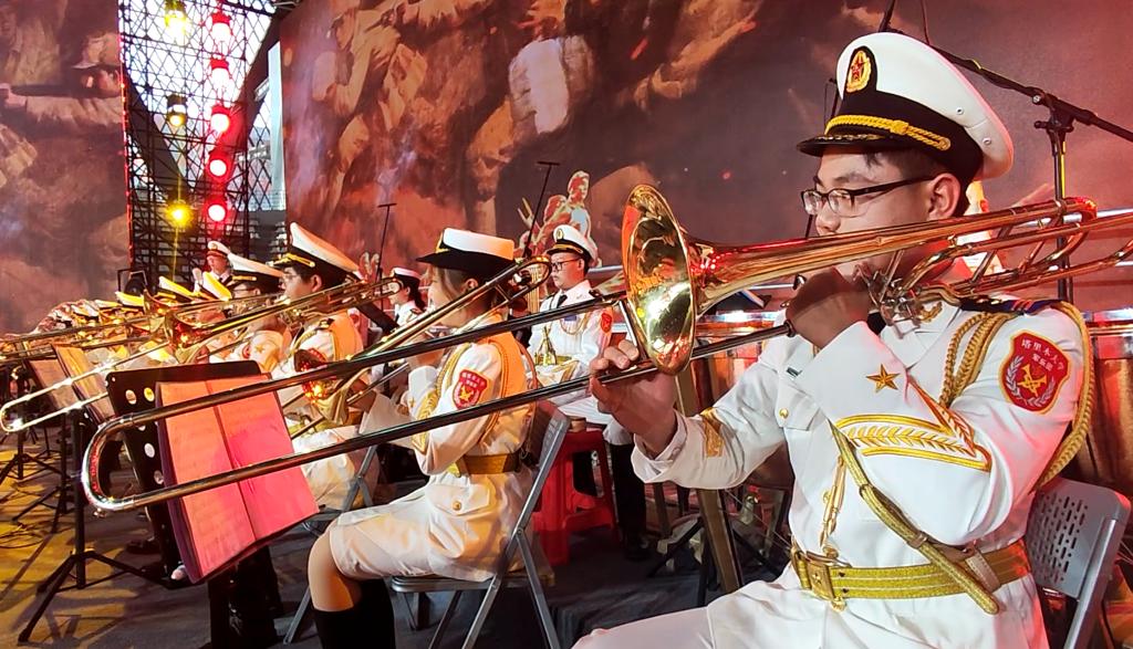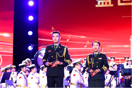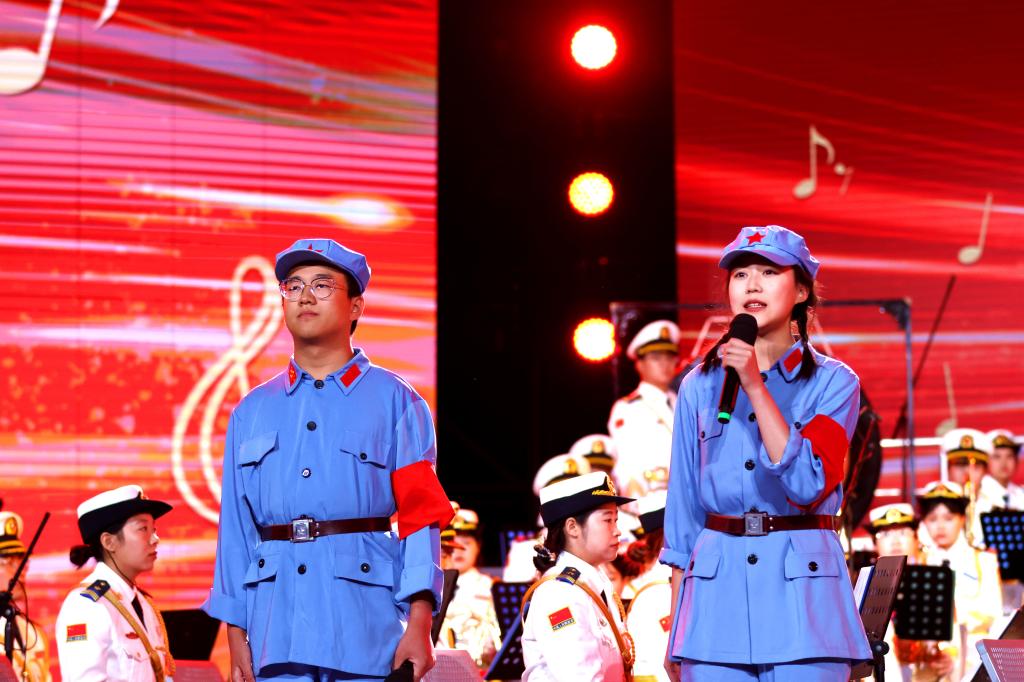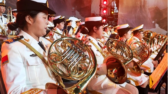 “路迢迢,秋風(fēng)涼。敵重重,軍情忙。紅軍夜渡于都河,跨過(guò)五嶺搶湘江……” 伴隨著聲情并茂的詩(shī)朗誦《突破封鎖線》,音樂(lè)會(huì)正式拉開(kāi)序幕,華麗的制服,金色的鼓號(hào),高亢激昂的音樂(lè)充滿演奏現(xiàn)場(chǎng)。