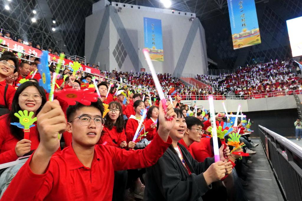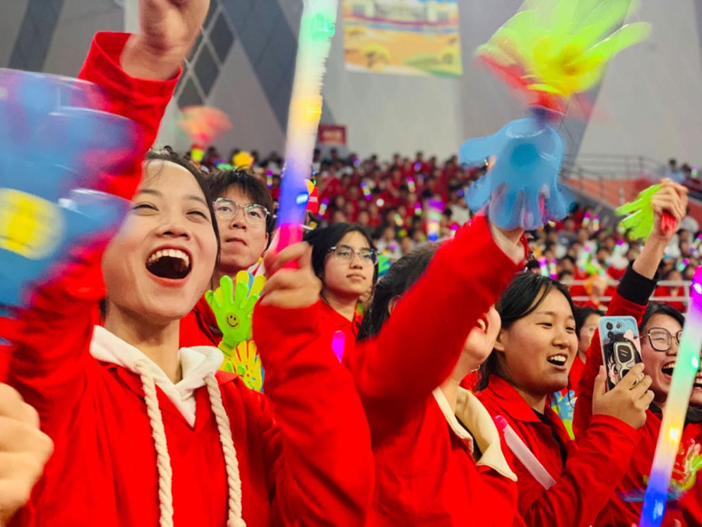 場上絢麗多彩,場下熱烈歡騰。體育館匯聚成歡樂的海洋,集聚起奮進(jìn)新征程、建功新時(shí)代的磅礴力量。