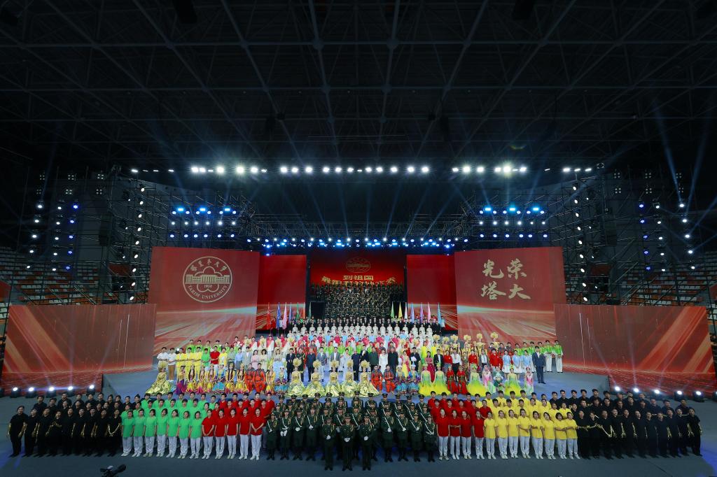 塔里木大學(xué)歷任校領(lǐng)導(dǎo)、離退休干部和教師、校友、家屬等代表,同全校處級干部、師生代表共同觀看演出。