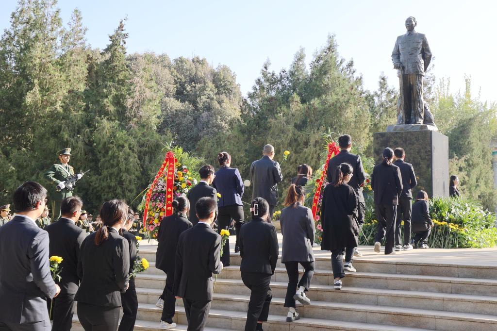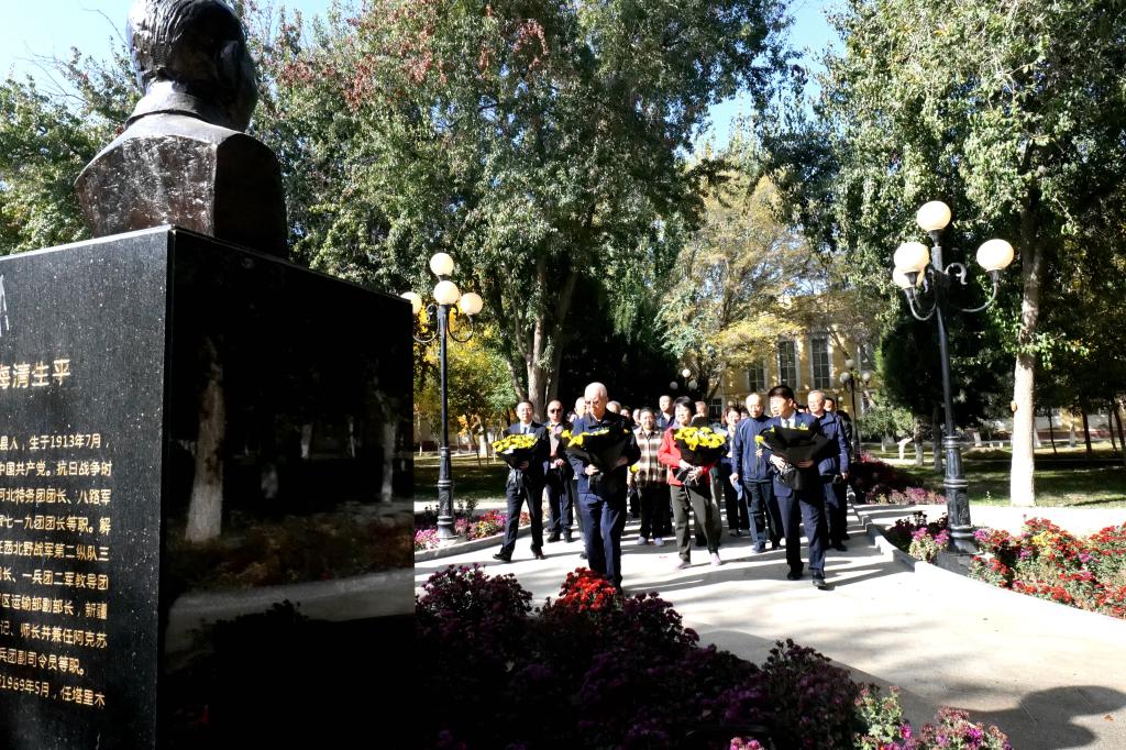 干部、師生依次走向銅像基座獻花,深情緬懷革命先烈的豐功偉績,表達對王震將軍等老一輩革命烈士的無限追思。