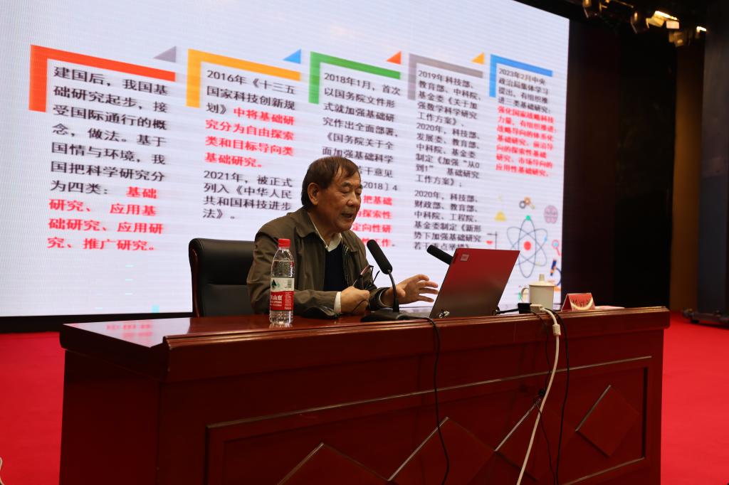 彭以祺從基礎(chǔ)研究的范疇、特點(diǎn)、發(fā)展歷程、作用等出發(fā),分析了新形勢下基礎(chǔ)研究面臨的新挑戰(zhàn),解讀了基礎(chǔ)研究有關(guān)政策,講解了國家重點(diǎn)實(shí)驗(yàn)室建設(shè)和基礎(chǔ)研究等有關(guān)知識。