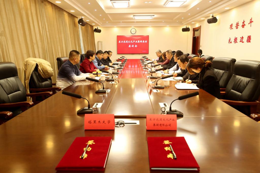 雙方舉行簽約儀式,簽訂了《塔里木大學(xué)與東方農(nóng)道文化產(chǎn)業(yè)集團(tuán)合作框架協(xié)議》。
