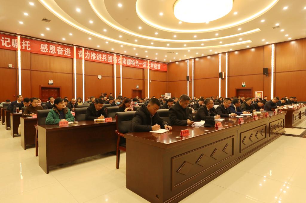 會議指出,要完整準確全面貫徹新時代黨的治疆方略和黨的教育方針,主動服務國家重大戰略需求,堅持用胡楊精神育人、為興疆固邊服務,在事關根本性、基礎性、長遠性問題上聚焦發力,以教育教學改革提質增效促進學科建設和人才培養高質量發展,扛起為黨育人、為國育才的職責使命。要主動融入和服務絲綢之路經濟帶核心區與新疆自貿試驗區建設,把科技創新擺到更加突出的位置,深化教育科技人才綜合改革,加強科教創新和產業創新融合,推動高水平開放辦學和科技自立自強。要統籌擴大辦學規模和高質量發展,奮力譜寫兵團特點南疆特色一流大學建設新篇章,忠誠履行新時代兵團維穩戍邊職責使命,在高質量推進中國式現代化兵團實踐中貢獻更大力量。