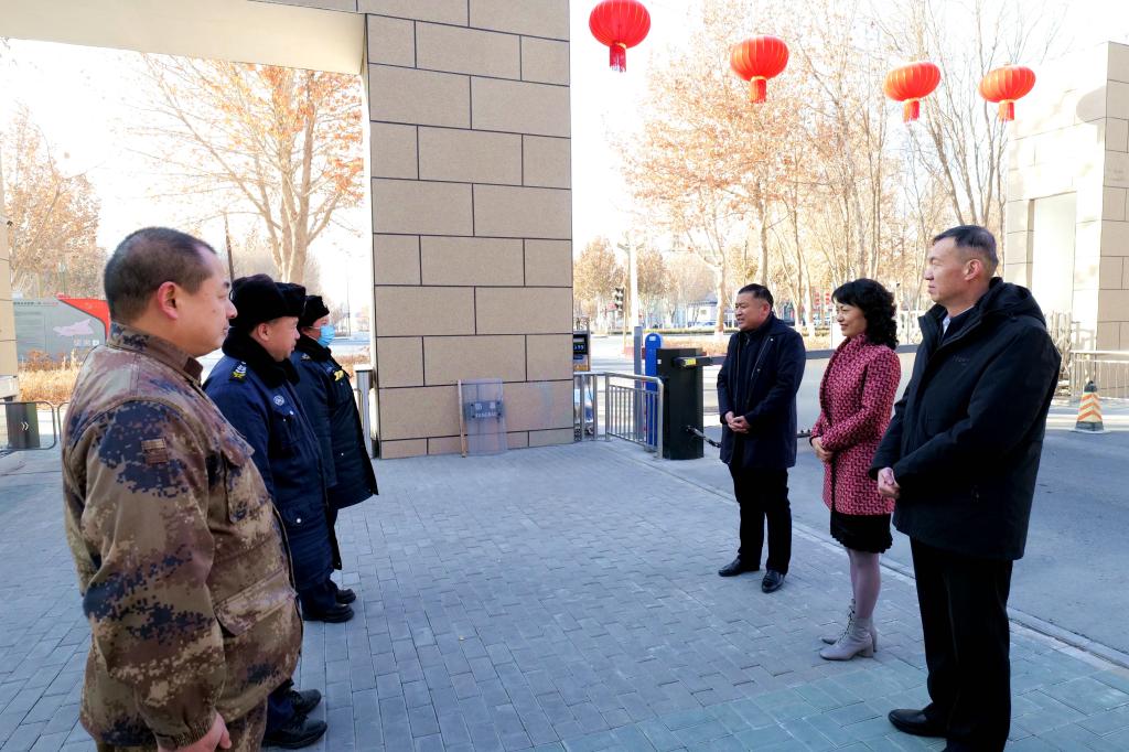 張愛萍先后來到保衛部、派出所、后勤保障中心、行政樓、北門、校醫院、南門等處,向大家送上新春祝福并表達誠摯問候。每到一處,仔細詢問大家的身體狀況、值班情況和生活起居,詳細了解工作需要和困難,充分肯定了大家過去一年為學校建設付出的辛勤努力和取得的工作成績,叮囑大家做好值班調休和安全保障。祝愿大家新年新氣象,希望大家在新一年繼續弘揚和踐行好胡楊精神,守土盡責、銳意進取、真抓實干,在平凡崗位上創造不平凡的業績,振奮龍馬精神,以龍騰虎躍、魚躍龍門的干勁闖勁,愛校榮校、拼搏奉獻,為開啟建設兵團特點南疆特色一流大學新征程作出新貢獻。
