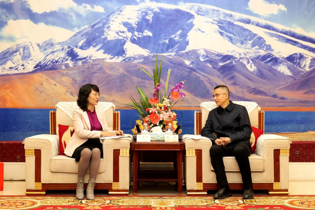 張愛萍對喀什地委、行署長期以來對學校的關心支持和幫助表示感謝,介紹了學校的辦學特色、歷史沿革和取得成就。她表示,塔大根植南疆大地辦大學,服務喀什地區發展義不容辭。此次調研旨在問計問需問智于喀什地區,為一流大學建設精準定位定向,更好助力喀什地區高質量發展。希望雙方在產業開發、人才培養、社會服務、文化傳承等領域深化全方位、多角度、長效化合作。通過搭建干部能力提升基地、人才培養基地、科學研究基地、科技成果轉化基地、國家通用語言文字推廣基地、鑄牢中華民族共同體意識基地,全力以赴打造兵地融合、校地合作的典范,為南疆地區提供人才、科技和文化支撐。
