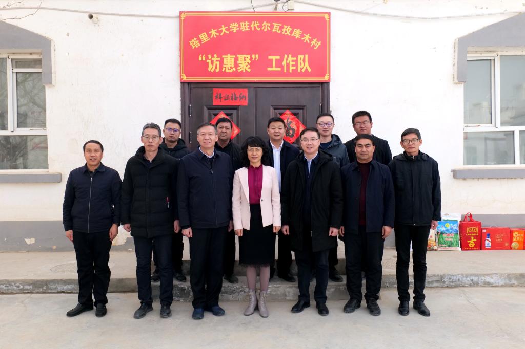 2月21日,塔里木大學黨委書記張愛萍,黨委副書記、校長閆祥林等校領導專程來到麥蓋提縣克孜勒阿瓦提鄉代爾瓦孜庫木村,看望慰問我校“訪惠聚”工作隊,并送新隊長到崗工作。