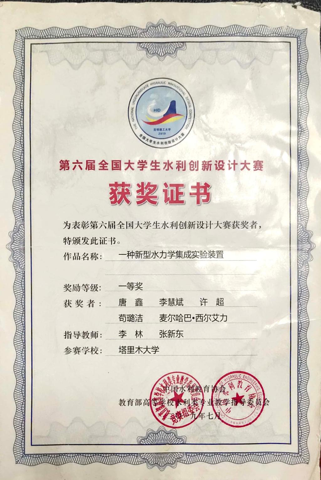 2019年7月,我校代表隊獲全國大學生水利創(chuàng)新設計大賽一等獎。