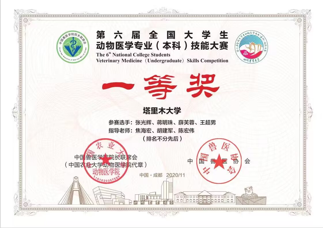 2020年11月,我校代表隊獲全國大學生動物醫(yī)學專業(yè)(本科)技能大賽一等獎。
