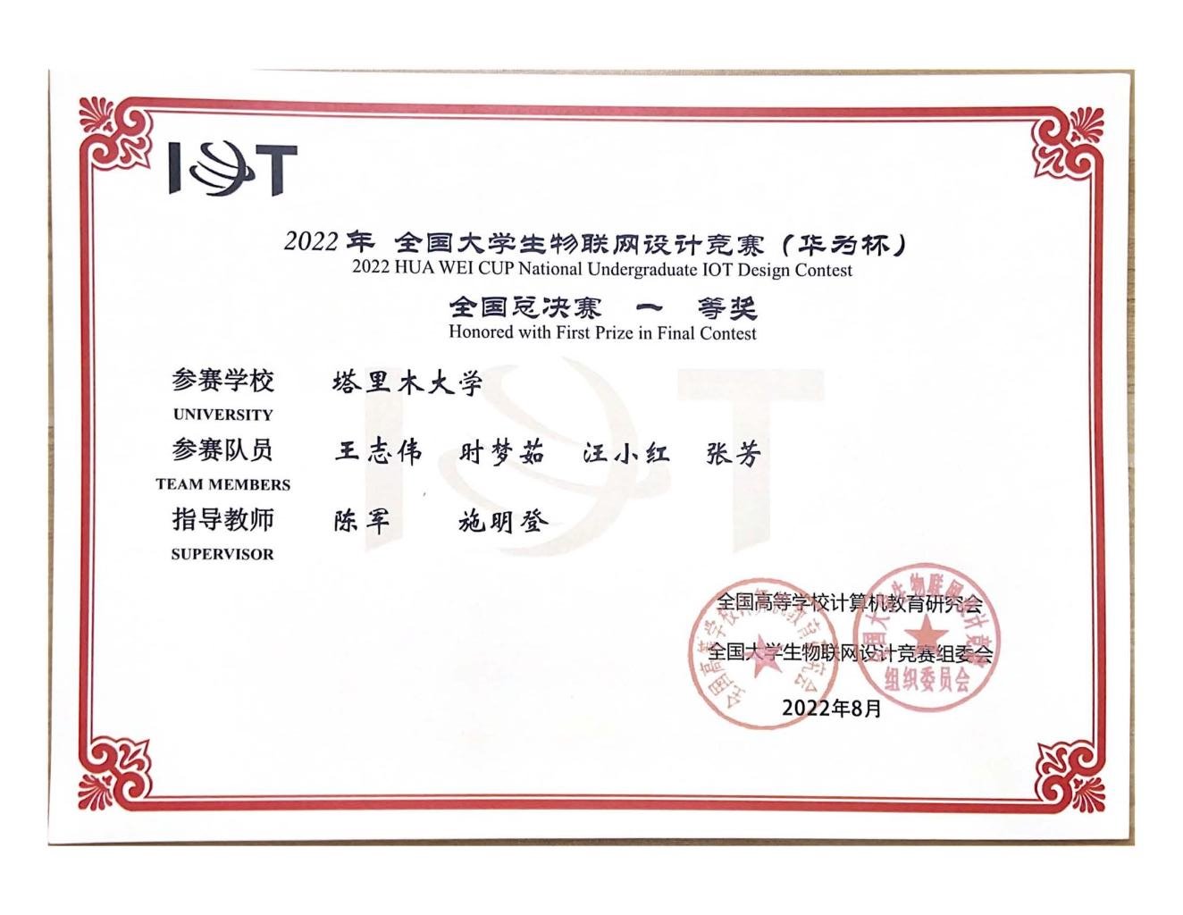 2022年8月。我校代表隊獲全國大學生物聯(lián)網(wǎng)設計競賽(華為杯)全國總決賽一等獎。