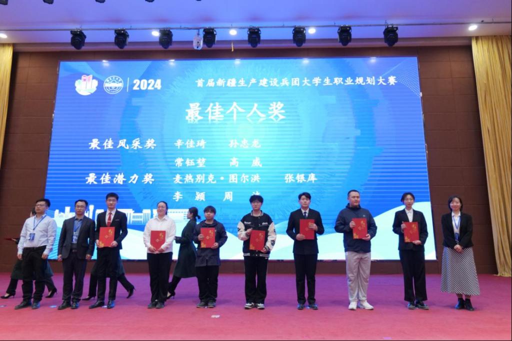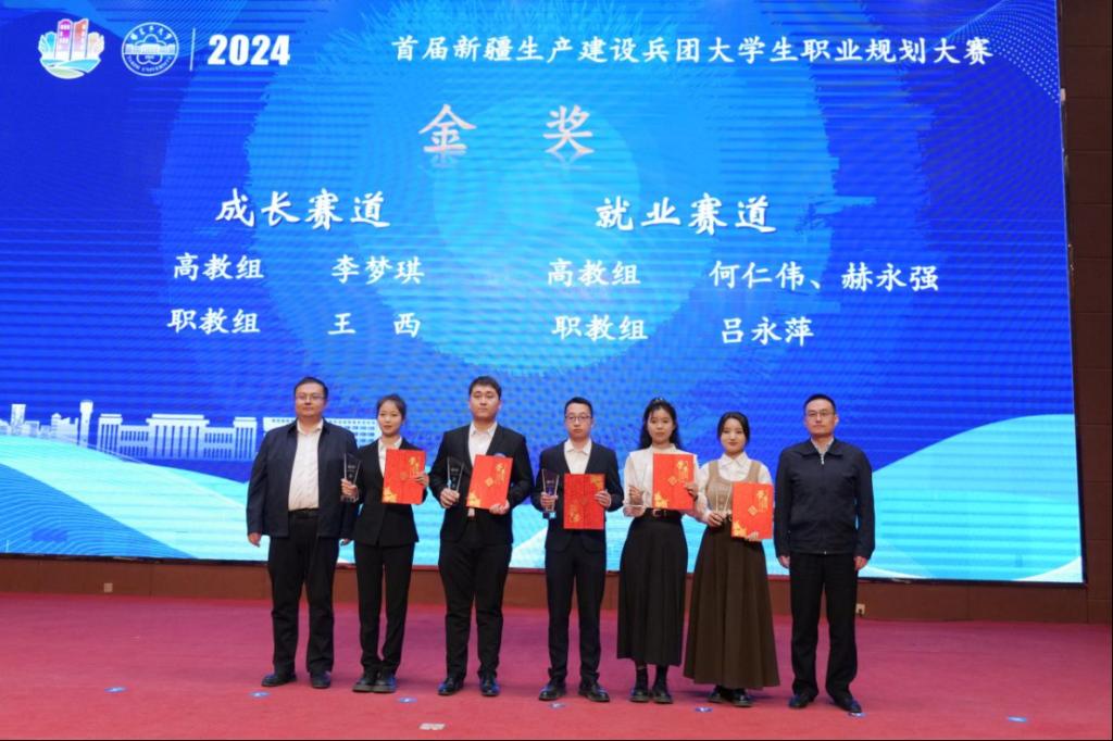 李夢琪、王西分獲本屆大賽成長賽道高教組、職教組金獎;何仁偉、赫永強、呂永平分獲本屆大賽就業賽道高教組、職教組金獎;王龍淼、劉巧芝分獲本屆大賽教學賽道高教組、高職組金獎。大賽還評出銀獎9名、銅獎17名、最佳個人獎8名。塔里木大學、石河子大學、石河子工程職業技術學院被授予優秀組織單位。與會領導為大賽獲獎團隊和個人頒發了獎狀、獎杯、證書。