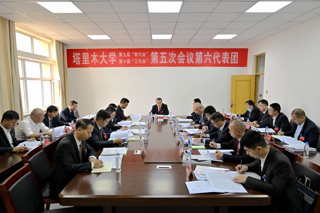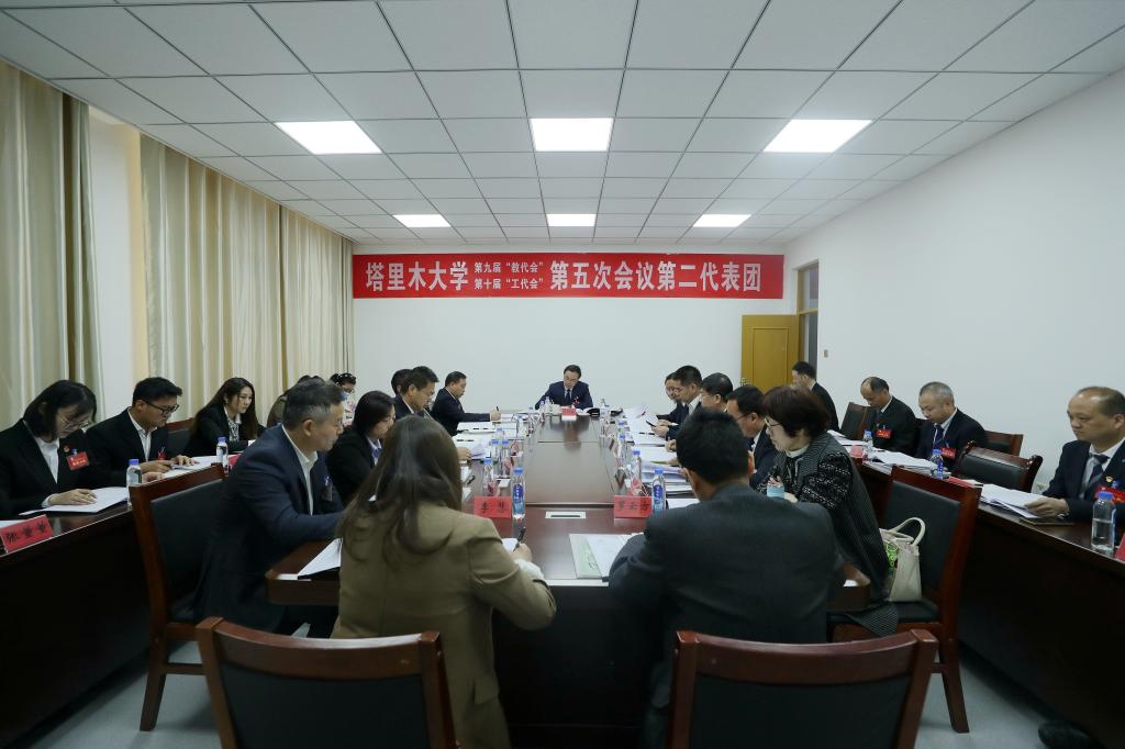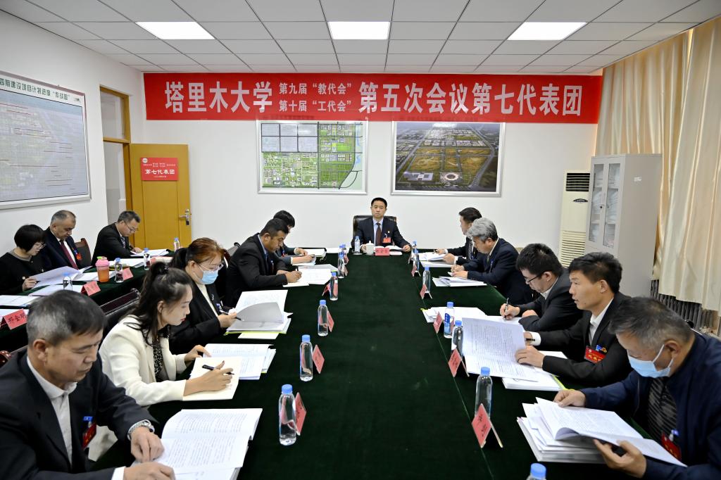 3月31日上午,塔里木大學(xué)第九屆“教代會(huì)”暨第十屆“工代會(huì)”第五次會(huì)議開(kāi)幕式結(jié)束后,全體代表、列席代表、特邀人員分成7個(gè)代表團(tuán),緊緊圍繞《學(xué)校工作報(bào)告(審議稿)》、《學(xué)校財(cái)務(wù)工作報(bào)告(審議稿)》、《學(xué)校提案工作報(bào)告(審議稿)》、《學(xué)校工會(huì)工作報(bào)告(審議稿)》、《學(xué)校工會(huì)經(jīng)費(fèi)審查報(bào)告(審議稿)》、《“十四五”規(guī)劃〈綱要〉主要指標(biāo)和重點(diǎn)專欄調(diào)整方案》(審議稿)(書(shū)面)進(jìn)行了深入熱烈的討論。校領(lǐng)導(dǎo)分別參加各討論組討論。