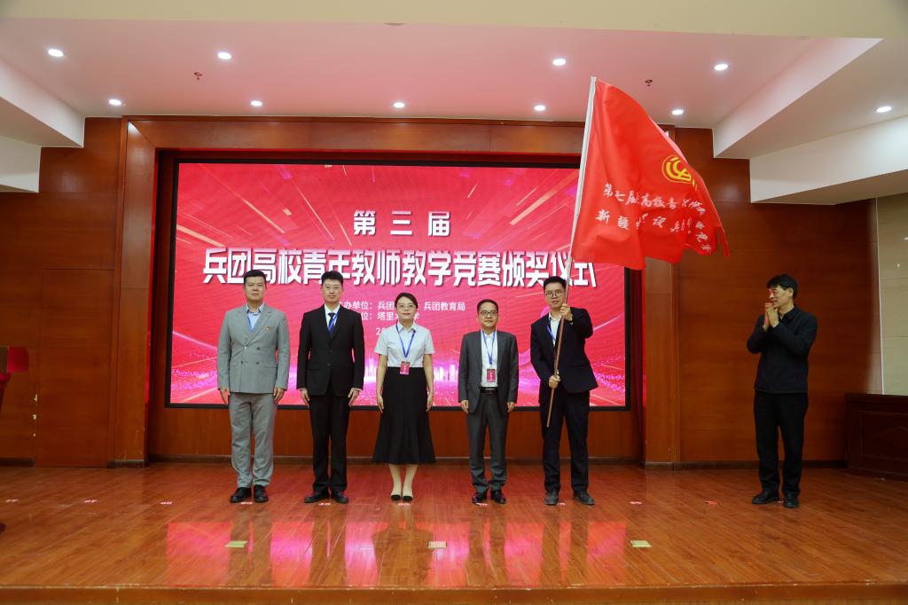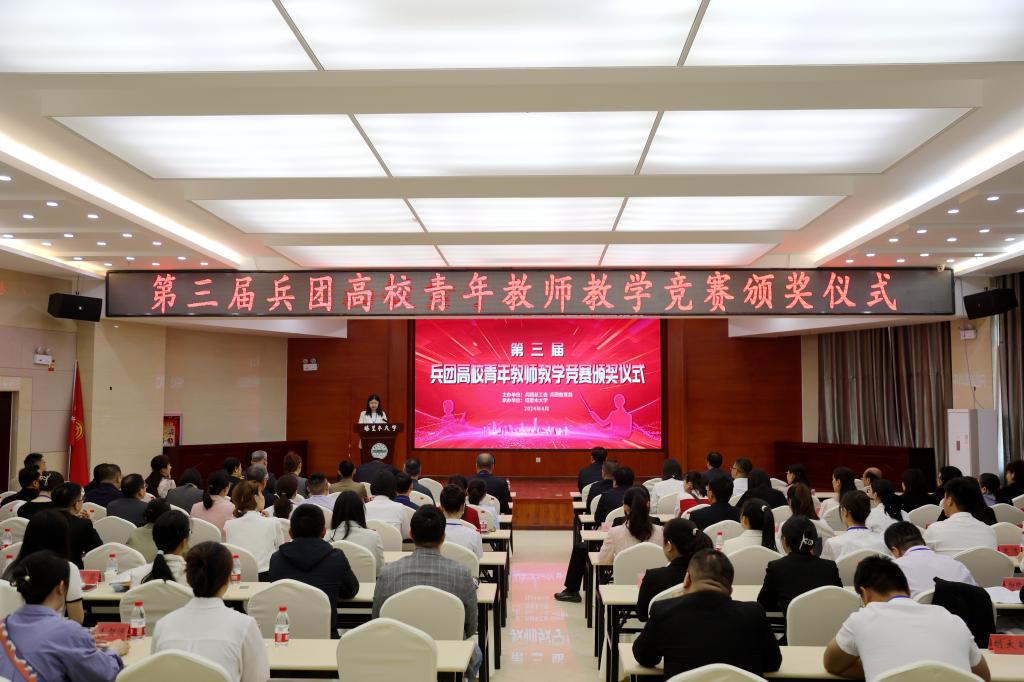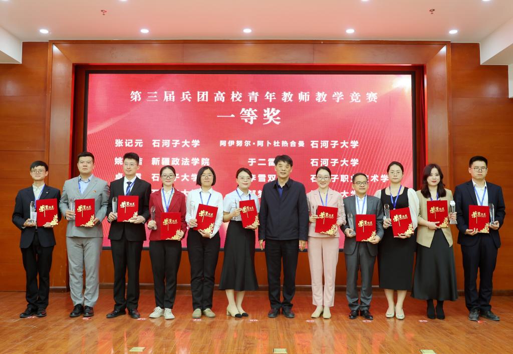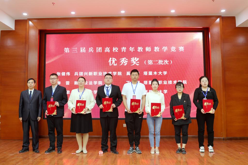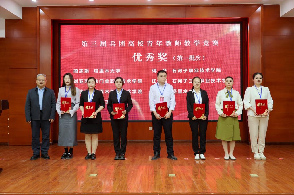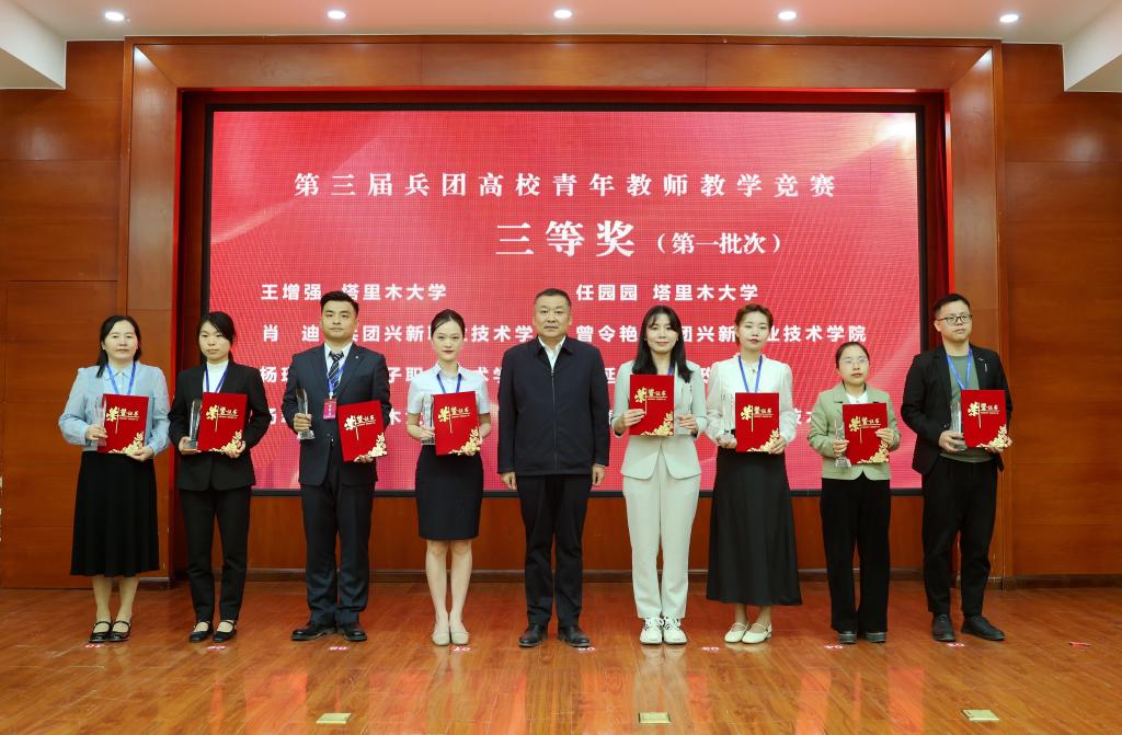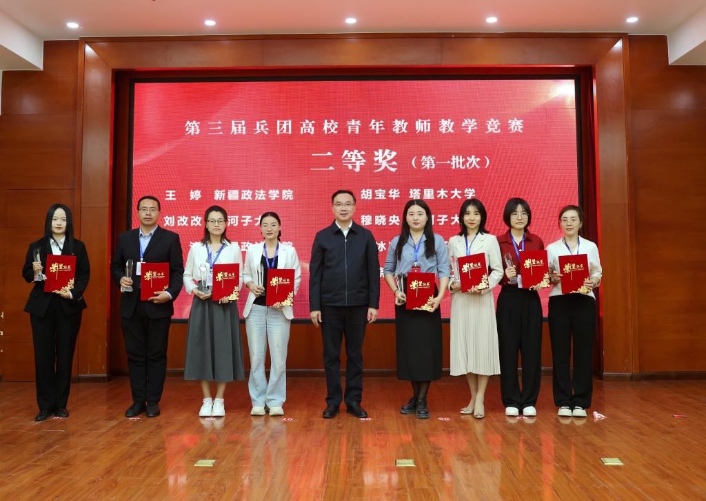 石長(zhǎng)青宣讀了《兵團(tuán)總工會(huì) 兵團(tuán)教育局關(guān)于第三屆兵團(tuán)高校青年教師教學(xué)競(jìng)賽獲獎(jiǎng)情況的通報(bào)》。與會(huì)領(lǐng)導(dǎo)尤益民、閆祥林、石長(zhǎng)青、謝建新、馬召偉,共同為獲獎(jiǎng)教師和優(yōu)秀組織單位進(jìn)行了頒獎(jiǎng)。