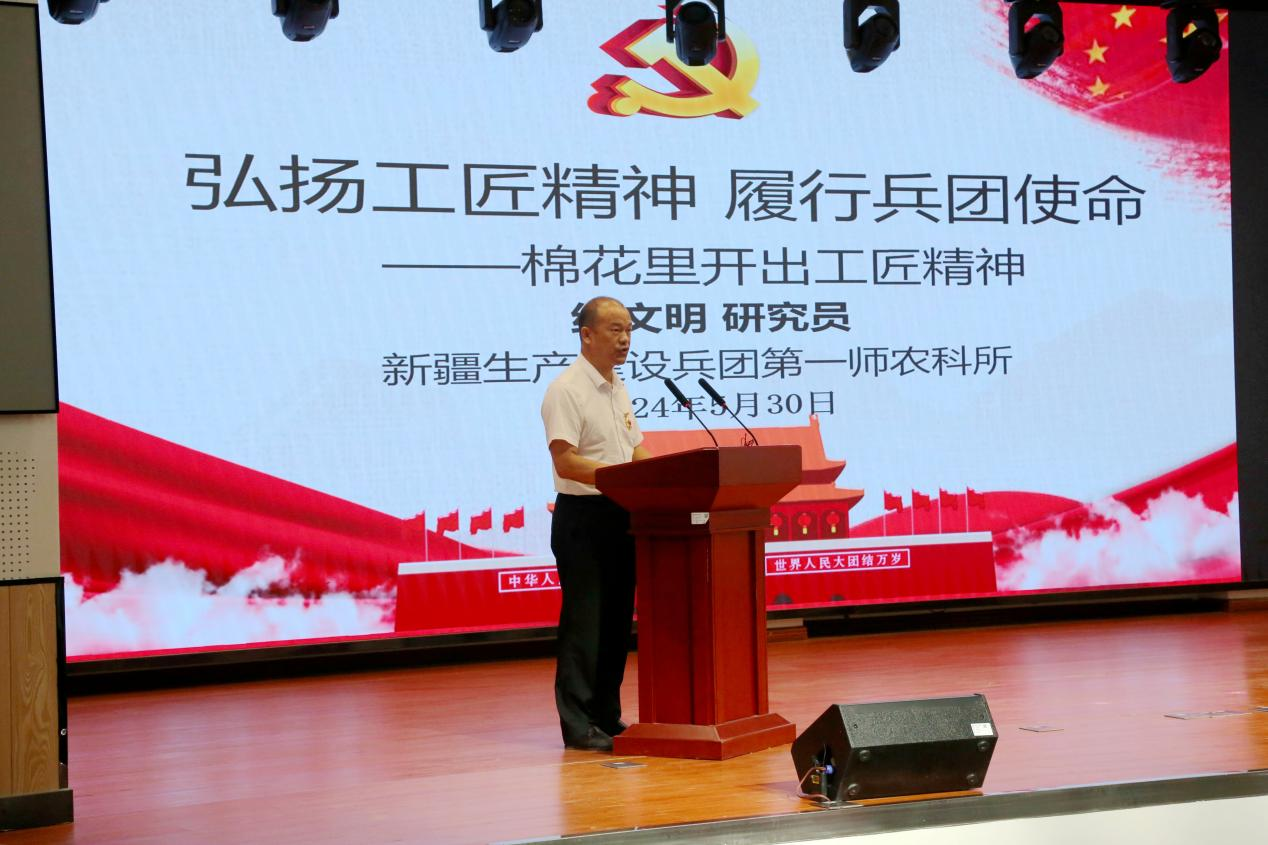 啟動儀式結束后,進入宣講活動專場。全國五一勞動獎章、大國工匠提名人物、兵團工匠年度人物、第一師阿拉爾市農科所黨委副書記、副所長練文明,結合親身經歷,用質樸的語言、鮮活的事例、真摯的情感,向廣大師生分享了他的奮斗歷程。