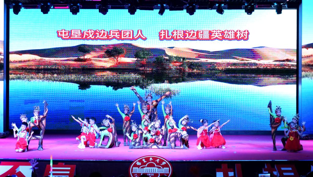 屯墾戍邊兵團人,扎根邊疆英雄樹。生而一千年不死,死而一千年不倒,倒而一千年不朽。文藝匯演在原創舞蹈《我給胡楊戴紅花》中拉開帷幕,靈動熱情的小朋友們,把胡楊精神演繹的淋漓盡致,博得了全場熱烈掌聲。