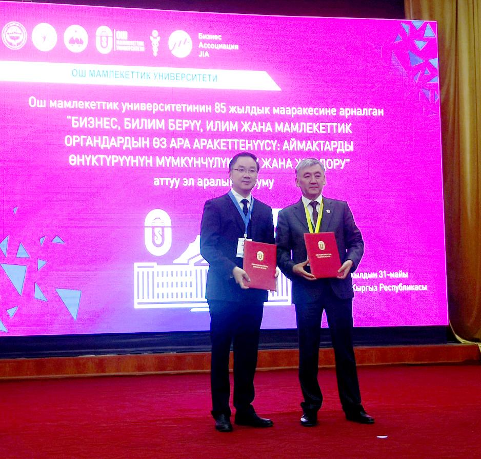 5月29日至6月1日,塔里木大學黨委副書記、校長閆祥林應邀率團訪問吉爾吉斯斯坦奧什國立大學,與該校校長Kudaiberdi Kozhobekov進行深入座談交流,并參加該校85周年校慶活動。
