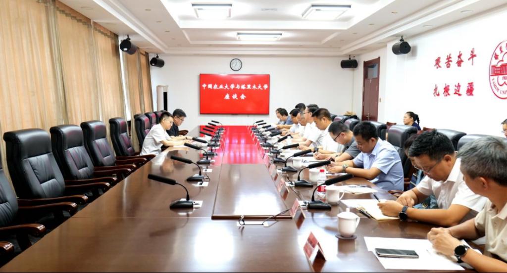 閆祥林與田見暉在行政樓四號洽談室進(jìn)行了會見,感謝中國農(nóng)業(yè)大學(xué)作為團隊式對口支援塔大組長單位,協(xié)調(diào)各支援高校對我校的無私援助和鼎力支持。希望中國農(nóng)業(yè)大學(xué)繼續(xù)發(fā)揮優(yōu)勢、持續(xù)推進(jìn)對口支援,在人才隊伍、平臺建設(shè)等方面幫助塔大補短板、強弱項、提質(zhì)量,助力兵團特點南疆特色一流大學(xué)建設(shè)。