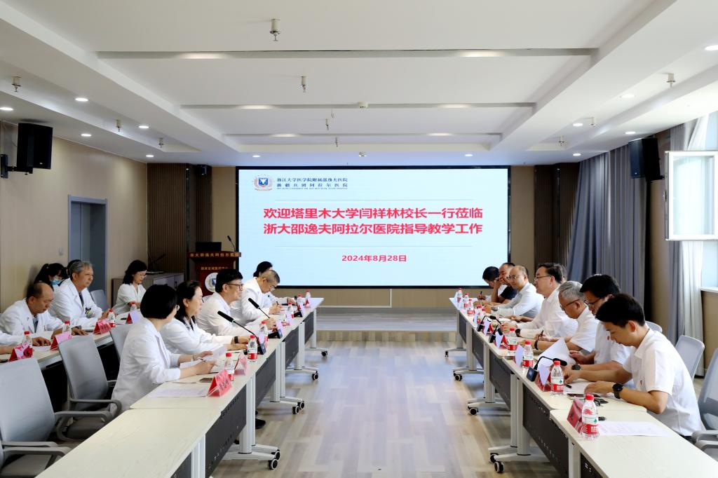 28日上午,雙方在浙大邵逸夫阿拉爾醫院婦幼樓17樓學術廳召開座談會。塔里木大學黨委副書記、校長閆祥林,黨委常委、副校長謝建新,浙大邵逸夫阿拉爾醫院黨委書記王志強,黨委副書記、院長張雷等領導參加。浙大邵逸夫阿拉爾醫院黨委委員、副院長秦旭紅主持。醫院領導、相關科室負責人參加。