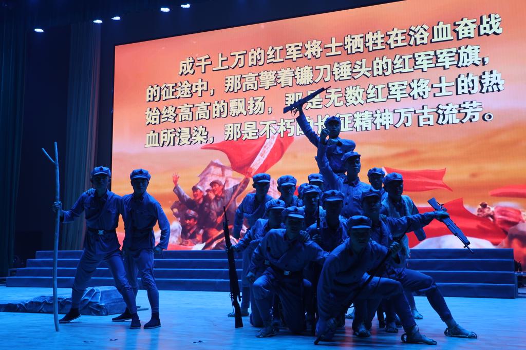 情景表演《過雪山草地》、情景表演與小合唱《七律·長征》,通過生動表演和情景再現,展現了長征的艱苦卓絕和革命先輩的英勇無畏。