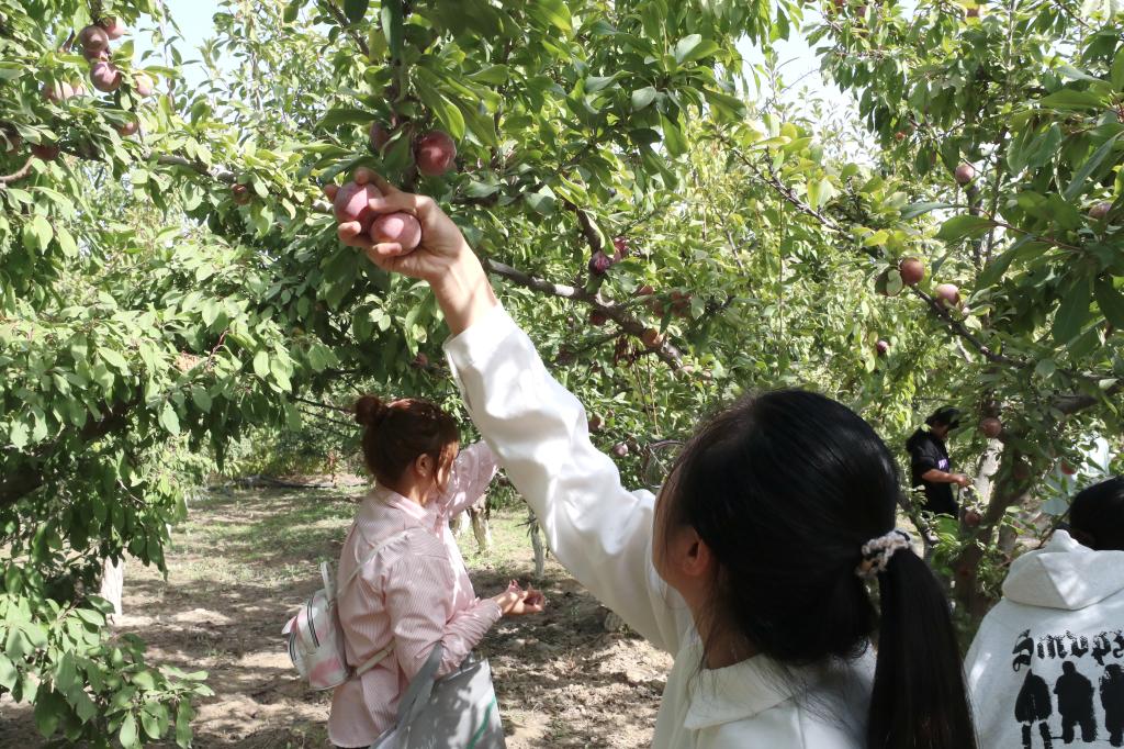 啟動儀式后,采摘活動開始,師生們穿梭在掛滿果實的梨園里采摘,歡聲笑語與勞動身影交織成一幅勞動、收獲、喜悅的畫面。