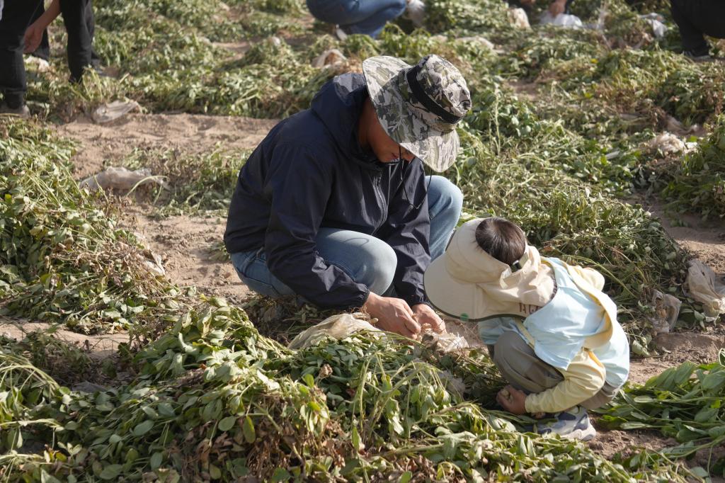 在試驗田里,師生們共同采摘,體驗田間勞動的辛勤和收獲的快樂,每個人的臉上都綻放著收獲和豐收的喜悅。