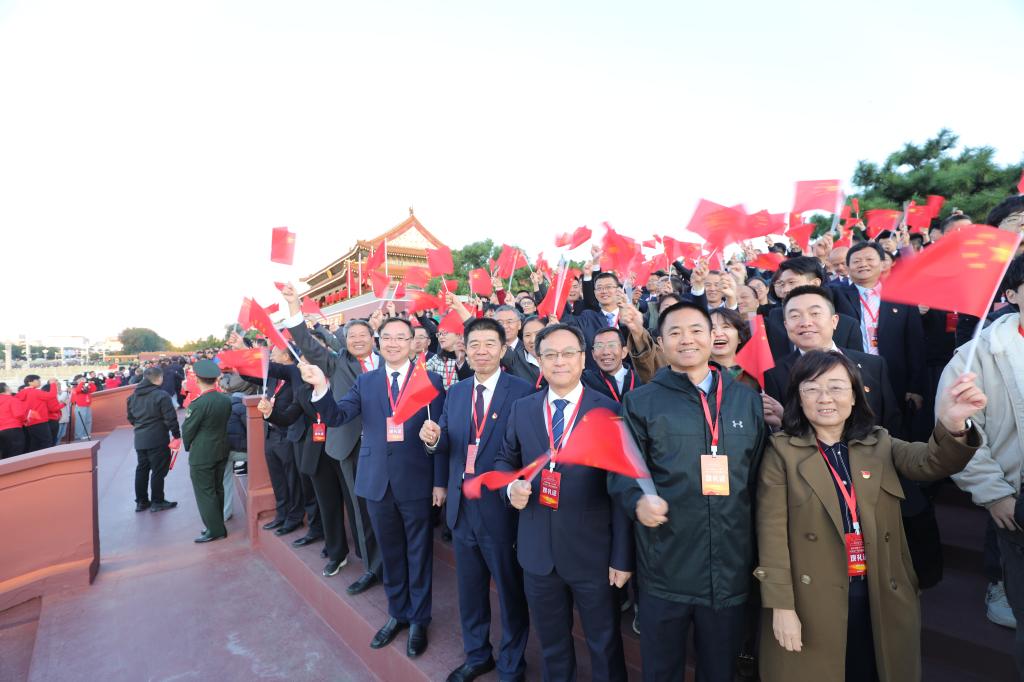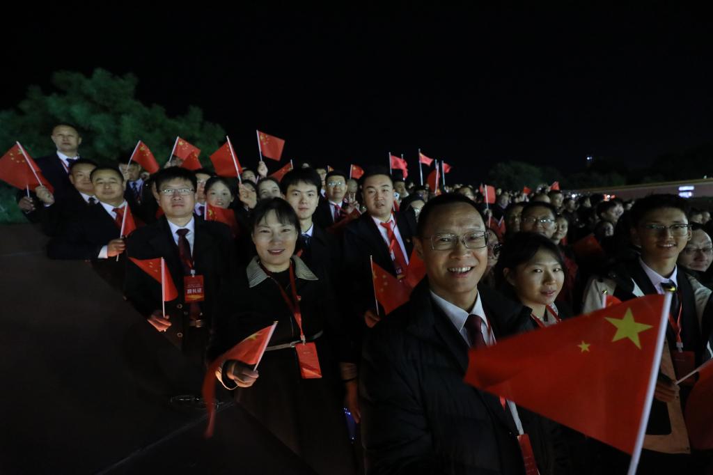 北京天安門廣場瞬間變成了紅色的海洋,五星紅旗高高飄揚(yáng),干部師生們的愛國情、強(qiáng)國志、報國行在這一刻迅速被點燃。“祖國,我愛你”“祝福祖國 強(qiáng)國有我”……聲浪一浪高過一浪,歡呼聲、掌聲,是對祖國最深沉的熱愛、最誠摯的祝福。