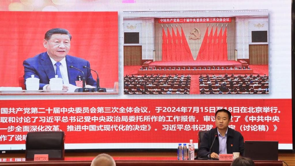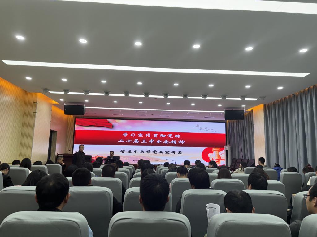 校領導主要從深刻把握黨的二十屆三中全會的主題及重大意義、深入學習領會習近平總書記在黨的二十屆三中全會上的重要講話精神、深刻把握進一步全面深化改革的重大舉措,牢記囑托、感恩奮進,推動全會精神在學校落地落實等方面,結合工作實際和學習體會,對黨的二十屆三中全會精神進行了全面深入解讀。要求廣大黨員干部、師生員工切實把思想和行動統一到全會戰略部署上來,把智慧和力量凝聚到落實全會提出的各項目標任務上來,統籌推進教育科技人才體制機制一體改革,為加快推進兵團特點南疆特色一流大學,推進中國式現代化兵團實踐作出積極貢獻。