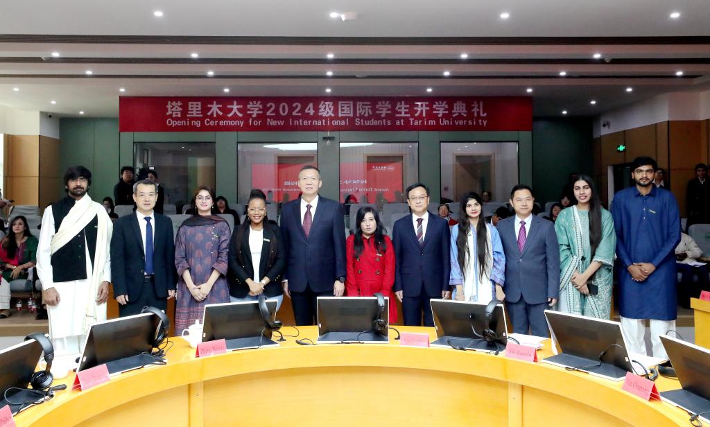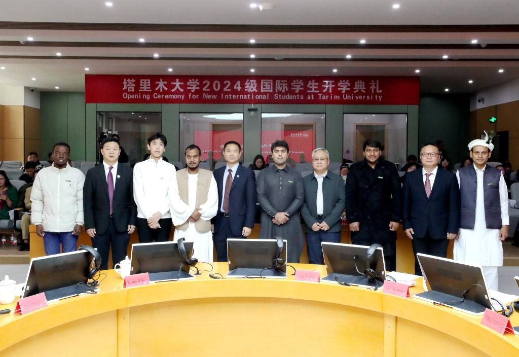 10月30日上午,伴隨著雄壯的奏唱國(guó)歌聲,塔里木大學(xué)2024級(jí)國(guó)際學(xué)生開(kāi)學(xué)典禮舉行。塔里木大學(xué)領(lǐng)導(dǎo)張愛(ài)萍、閆祥林、于軍、石長(zhǎng)青、林松濤、湯智輝、萬(wàn)傳星、張宏榮、謝建新、張偉信、高慶華,特邀嘉賓、國(guó)際學(xué)生專(zhuān)班成員、導(dǎo)師、工作人員、2024級(jí)國(guó)際學(xué)生共同參加。開(kāi)學(xué)典禮由石長(zhǎng)青主持,在新校區(qū)(東擴(kuò)區(qū))四期外國(guó)語(yǔ)學(xué)院三樓同傳室舉行。