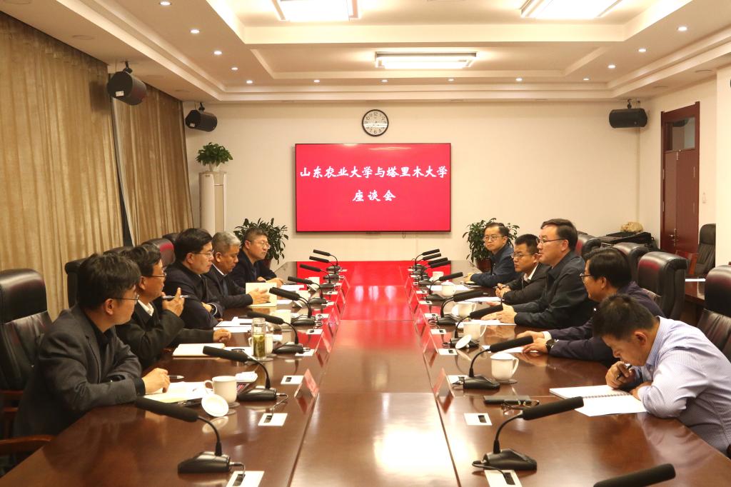 雙方圍繞有關合作事宜展開深入交流研討。會前,大家共同觀看了塔里木大學、山東農業大學宣傳片。