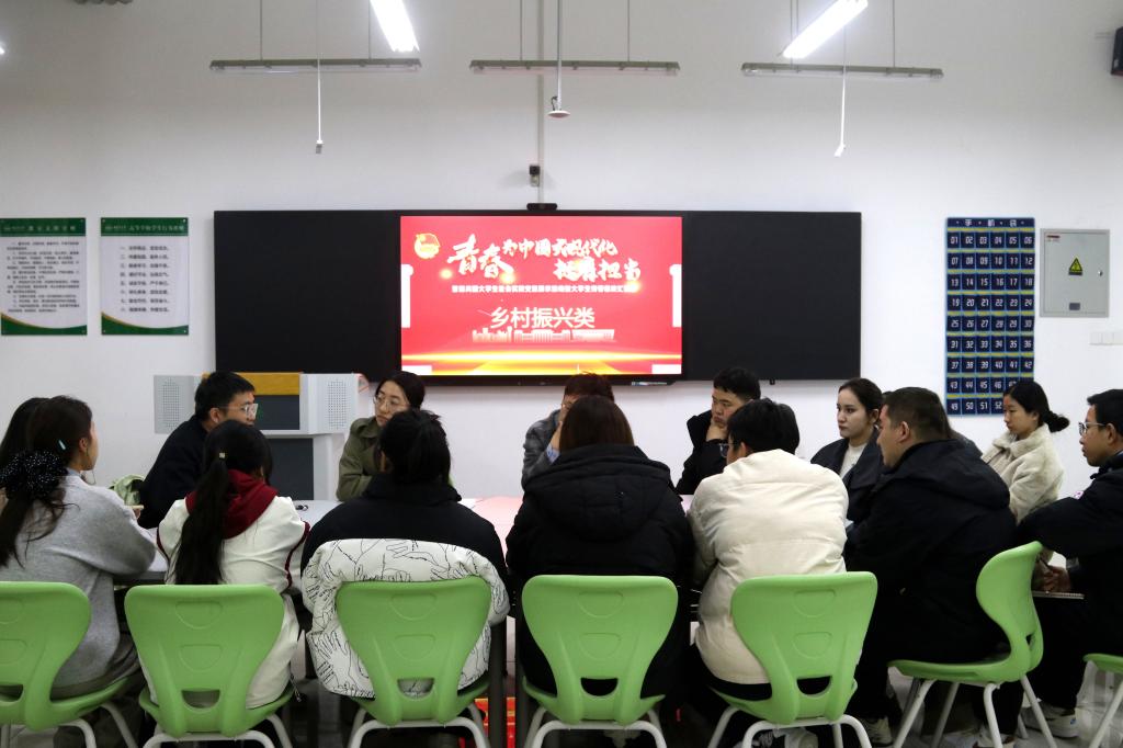 9日晚,參會師生們圍繞鄉村振興、民族團結、基層服務、理論宣講、普法宣傳五大主題,在圖書信息大樓A棟多媒體教室開展深入座談交流。