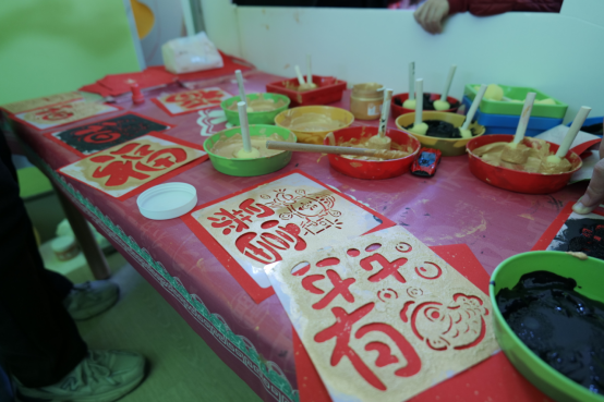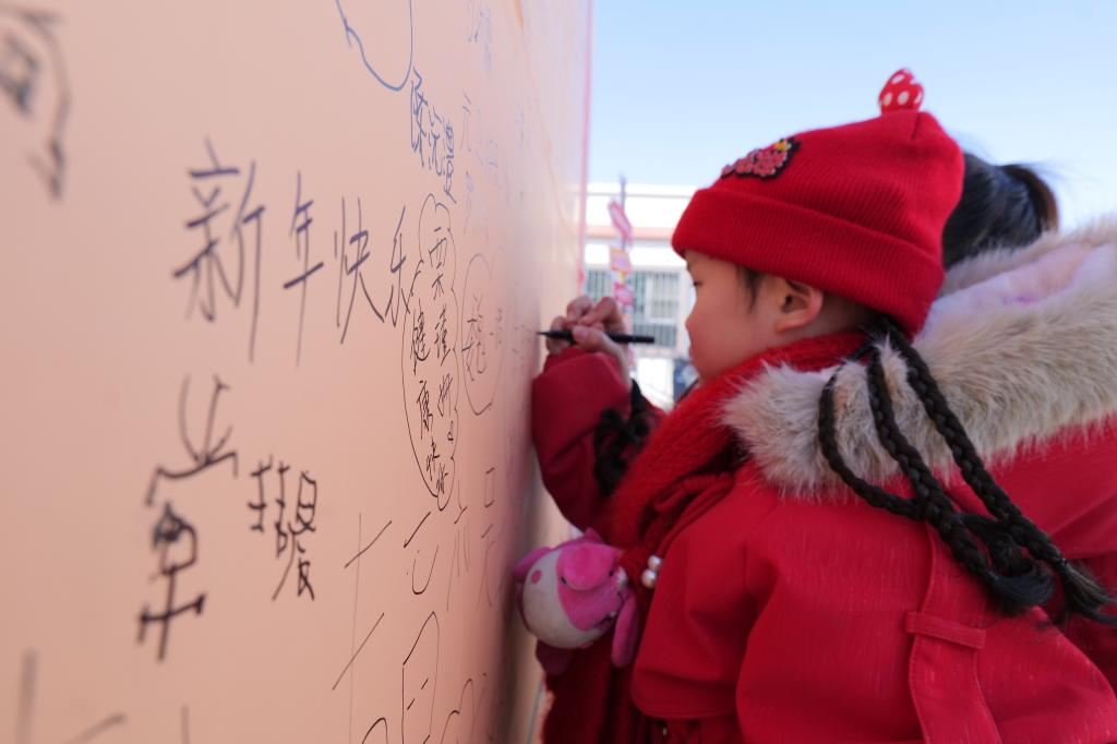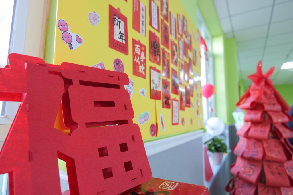 紅彤彤的“福”字、七彩絢麗的燈籠、寓意美好的新年祝福墻、琳瑯滿目的手工繪畫剪紙,把小胡楊幼兒園妝點一新,充滿迎新年喜慶氛圍。
