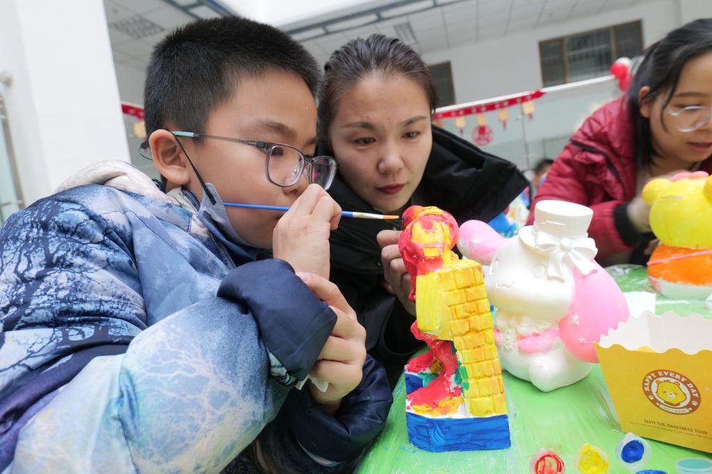 彩繪陶瓷、花藝制作、剪窗花、才藝表演,吸引著青少年和小朋友的目光,為新春的喜悅增添了活躍的氣氛,一幅幅作品、一首首歌謠、一段段舞蹈也寓意著新年美好和希望。
