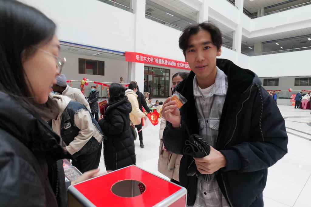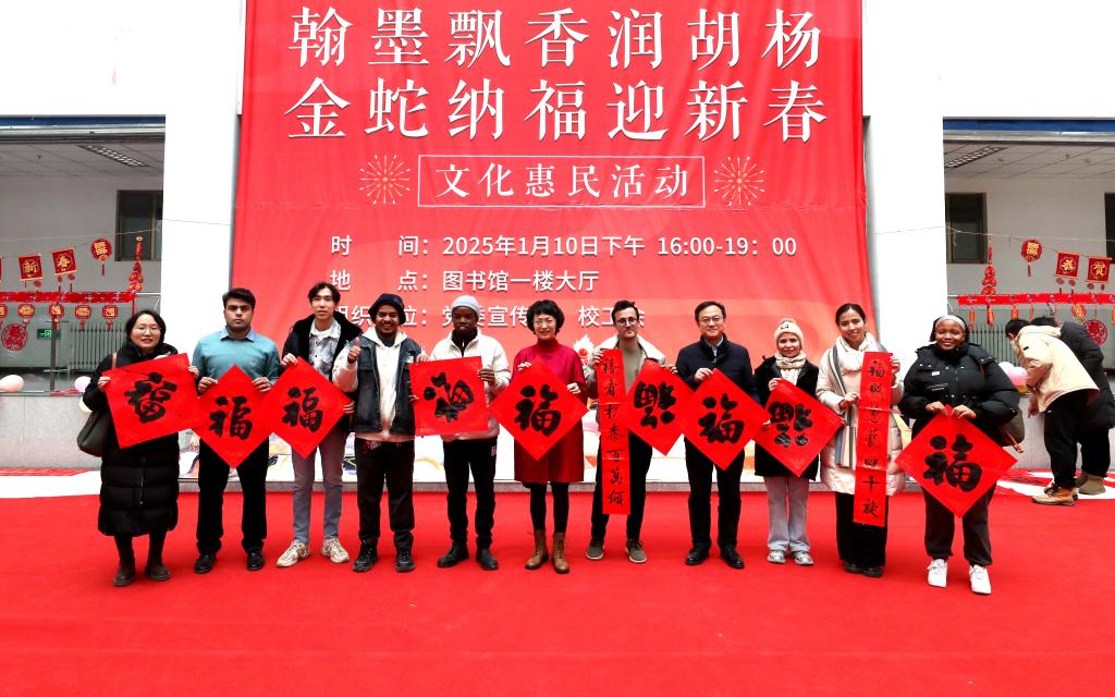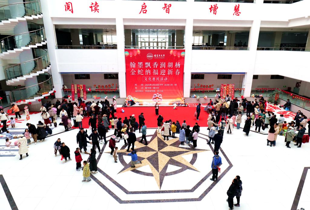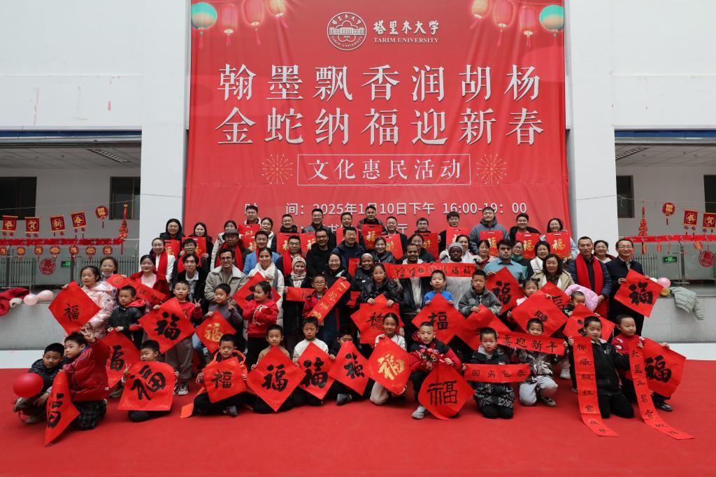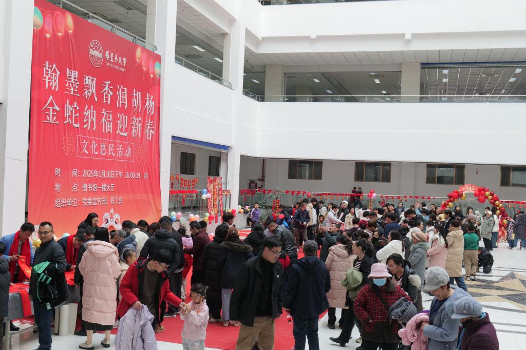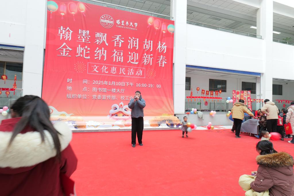 在乙巳蛇年即將來臨之際,1月10日下午,塔里木大學“翰墨飄香潤胡楊,金蛇納福迎新春”文化惠民活動徐徐展開。全校師生、教職工家屬,國際留學生近500人齊聚一堂,現場熱鬧非凡。
