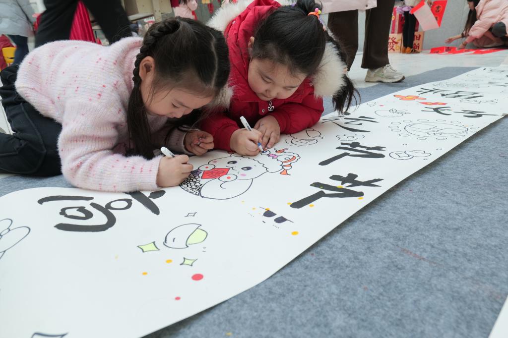 長卷徐徐鋪開,五彩斑斕躍然紙上。畫長卷處,小朋友們正聚精會神地作畫,或細膩勾勒,或絢麗華彩,畫筆在紙上舞動,色彩斑斕的畫面逐漸呈現,引得過往人群紛紛駐足觀看,嘖嘖稱贊,現場彌漫著濃厚的文化氛圍。
